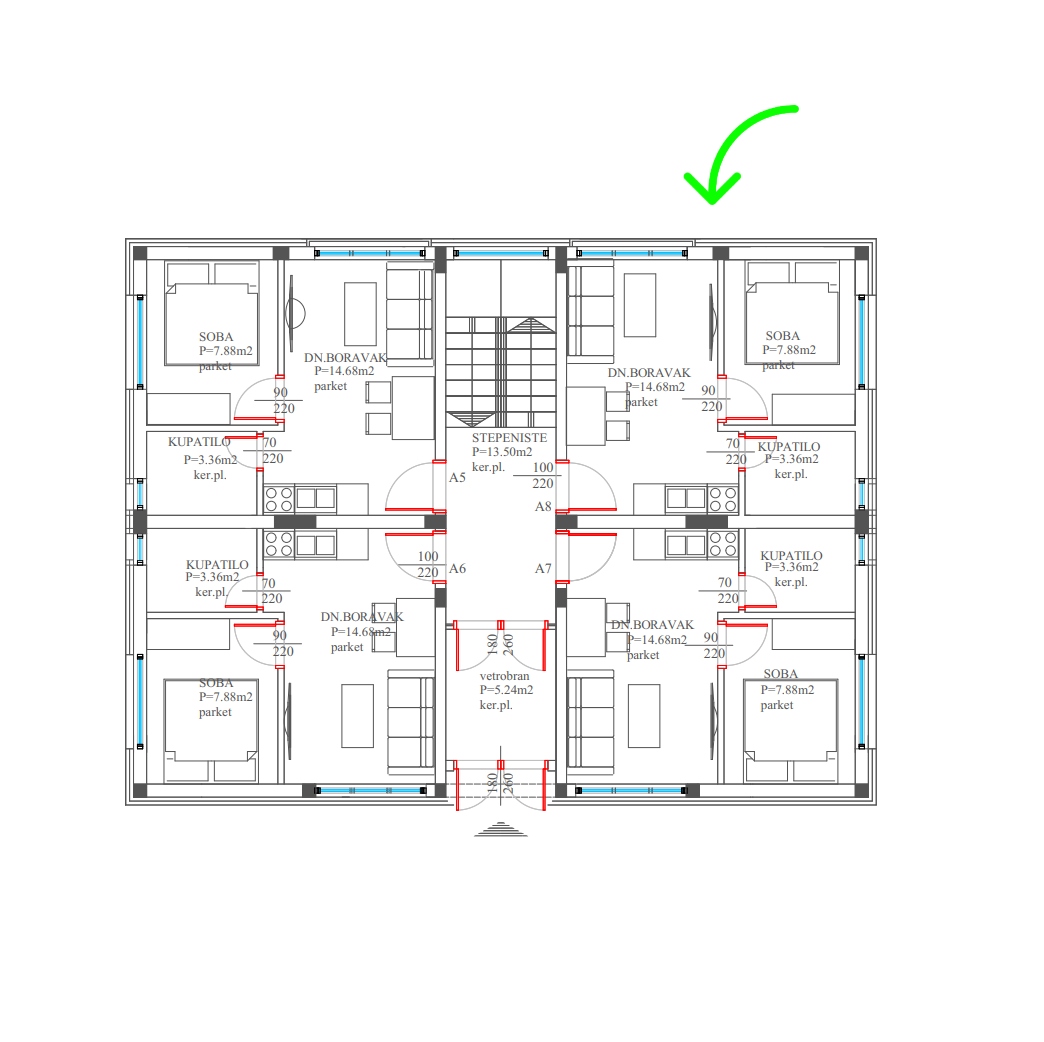 - Jugozapadna orijentacija – maksimalno sunce tokom cele godine.