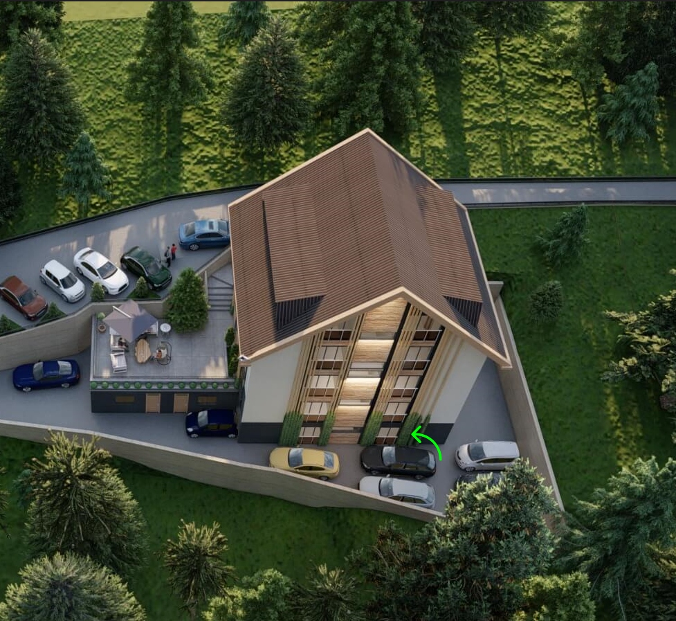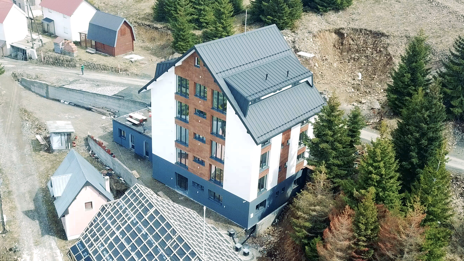 U srcu Zlatibora, u zelenoj zoni okruženoj borovom šumom, prodaje se građevinsko zemljište ukupne površine 3.002 m² sa gotovim projektom za luksuzni apart-hotel/stambenu zgradu.